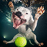 Neverjetne fotografije psov, ki so bile posnete pravi trenutek, ko so skočili v vodo po žogo. |