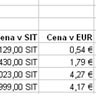 Razpredelnici, kjer so vpisane cene v SIT, bomo dodali še cene v Evrih. Ker postaja Evro aktualna tema, je ta osnovna lekcija pretvarjanja na mestu.