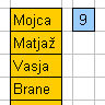 V novi razpredelnici bomo vpisali nekaj poljubnih imen, ki jih bomo potem z funkcijo COUNTA prešteli.