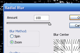![]() Kliknite zgoraj na Filter, Blur in izberite Radial Blur... |