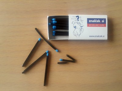 ![]() Za omenjena trika potrebujete vžigalce. Meni jih je posodilo podjetje Znalček, ki se ukvarja z miselnimi igrami.