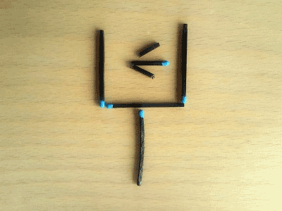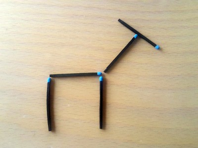 ![]() Potem pa najprej s petimi vžigalicami sestavite kozo, kot sem jo jaz na sliki. V naslednjem koraku morate premakniti samo eno vžigalico, s katero boste spremenili smer koze. |