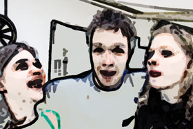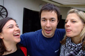 Meni na rojstnem dnevu pozirajo Bojana, Aleš in Renata.
