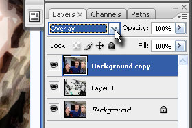 Temu layerju določite senčenje na Overlay (glej sliko).