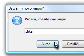V oknu ustvarim novo mapo v prazno polje vpište slike in potrdite na gumb V redu.