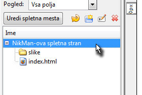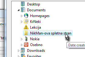 Jaz sem z gumbom Ustvari novo mapo ustvaril mapo NikMan-ova spletna stran in jo označil. |