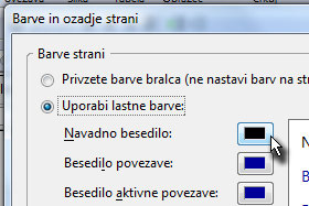 V novem oknu označite Uporabi lastne barve in kliknite na kvadratek za določanje barve pri polju Navadno besedilo. |