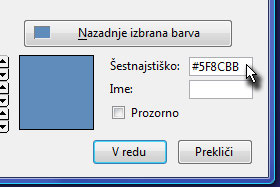 ...in v novem oknu v polje Šestnajstiško vpišite vrednost #5F8CBB, ki predstavlja modro barvo in potrdite na gumb V redu.