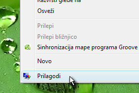 Na namizje kliknite z desnim miškinim gumbom in nato izberite Prilagodi.