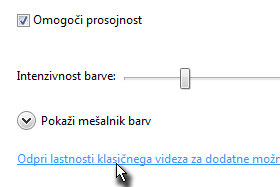 Nahajate se v oknu prilagoditev videza in zvokov, kjer kliknite na Barva in videz oken.