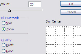Kliknite zgoraj Filter, Blur, Radial Blur in nastavite tako kot prikazuje slika.