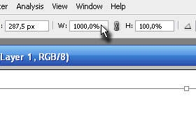 Še vedno imejte selekcijo aktivno in zgoraj v orodni vrstici določite W na 1000,0% (dodajte eno ničlo).