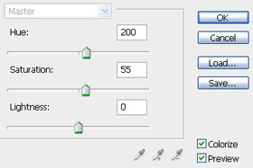 Kot prvo označite Colorize, nato pa se spet malo poigrajte z drsniki, da boste dobili željeno oziroma poljubno barvo. Jaz sem tukaj nastavil modro barvo. |