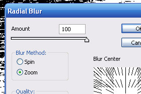 Amount nastavite 100, Blur Method označite Zoom in Quality določite Best, da bo rezultat boljši. Klik na gumb OK. |
