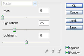 Kot prvo označite Colorize, nato pa se poigrajte z drsniki, da boste dobili željeno oziroma poljubno barvo. Jaz sem tukaj nastavil kar privzete nastavitve. |