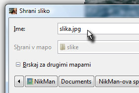 V novem oknu določite ponovno mapo slike, ki se nahaja v mapi spletne strani in v polje Ime vpišite slika.jpg. Kliknite na gumb Shrani. |