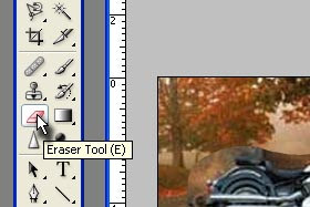 Izberite sedaj orodje Eraser Tool (bližnjica je tipka E).