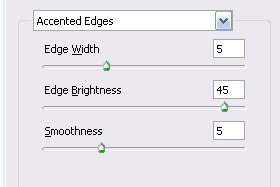 ![]() Kliknite zgoraj na Filter, Brush Strokes in izberite Accented Edges... Potrdite spremembe na gumb OK. |