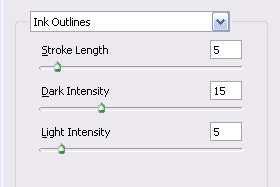 ![]() Kliknite zgoraj na Filter, Brush Strokes in izberite Ink Outlines... |