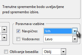 V novem oknu označite Navpično, ki se nahaja pri polju Poravnava vsebine.