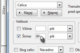 V novem oknu določite Širina 60 pik in potrdite na gumb V redu.