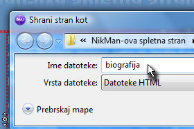 V novem oknu v polje Ime datoteke vpišite biografija in shranite v mapo, kjer se nahaja spletna stran. Kliknite tukaj za ogled naslednje lekcije. |