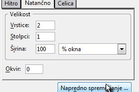 Kliknite na zavihek Natančno in nastavite Vrstice 2, Stoplci 1 in Širina na 100 %.