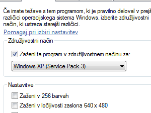 ![]() Ker uporabljam Windows 7 in je program za posodobitev BIOS-a prirejen za operacijski sistem Windows Vista, je le-tega potrebno zagnati v združljivostnem načinu, da se lahko program zažene v načinu Windows XP SP 3. |