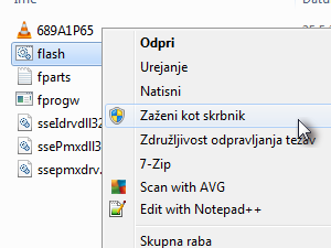 ![]() Zaženite posodobitveni program. V mojem primeru je to flash.bat, ki mu tudi dodelimo skrbniške pravice ob njegovem zagonu. |