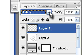 Novemu layerju določite senčenje na Multiply (glej sliko).
