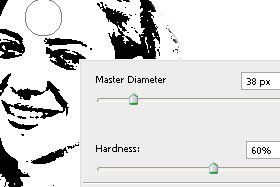 Kliknite z desnim miškinim gumbom na dokument in izberite poljubno velik Master Diameter (velikost čopiča) in Hardness na 60% (glej sliko).