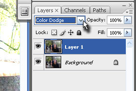 Potem pa dupliciranemu layerju nastavite senčenje na Color Dodge (glej sliko). |