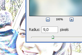 Ne ustrašite se bele barve :) Kliknite zgoraj na Filter, Blur in izberite Gaussian Blur... V novem oknu določite Radius na okoli 9,0 pixels in potrdite na gumb OK. |