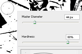 Kliknite z desnim miškinim gumbom na dokument in izberite poljubno velik Master Diameter (velikost čopiča) in Hardness na 80% (glej sliko).