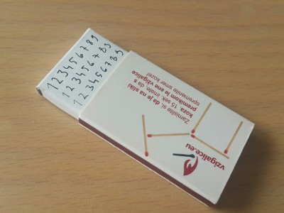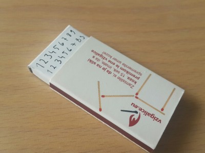 ![]() Potem pa predal za vžigalice povecite malenkost navzven in napišite številke od 1 do 9 (glej sliko). Povejte sogovorniku, da naj si izbere neko število in naj vam jo ne pove. |