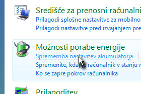 Pri polju možnosti porabe energije kliknite na povezavo Sprememba nastavitev akumulatorja. Po tej povezavi sem lekcijo tudi imenovala. |