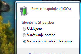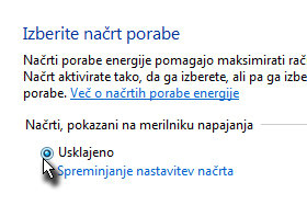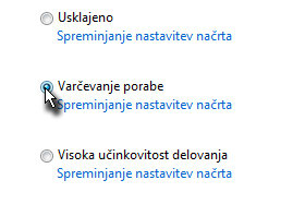 če boste izbrali Varčevanje porabe, bo vač notesnik varčeval z porabo z in breznapajanja.