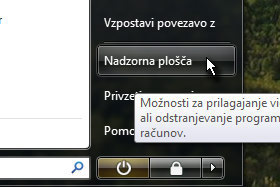 Kliknite na gumb Start in izberite Nadzorna plošča.