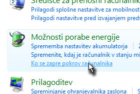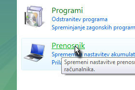 Kliknite na povezavo Prenosnik. Če ne uporabljate prenosnega računalnika, potem verjetno teh nastavitev nimate in je ta lekcija za vas neuporabna :( |