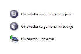 To so Ob pritisku na gumb za napajanje, ob pritisku na gumb za mirovanje in Ob zapiranju pokrova. |