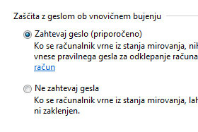 Sedaj lahko določite še, ali naj se računalnik prebudi z geslom ali ne.