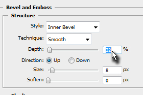Še vedno v "Layer Styles" oknu kliknemo na Bevel and Emboss.