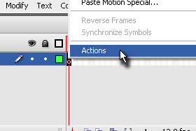 Kliknite na Frame 1 z desnim miškinim gumbom in izberite Actions.