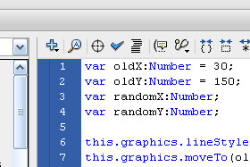 var oldX:Number = 30; var oldY:Number = 150; var randomX:Number; var randomY:Number; this.graphics.lineStyle(3,0x00BB00); this.graphics.moveTo(oldX,oldY); this.addEventListener(Event.ENTER_FRAME, drawRandom); function drawRandom(event:Event):void { randomX = oldX + Math.random() * 3; randomY = 50 + Math.tan(oldY + Math.random() * 3); this.graphics.lineTo(randomX,randomY); oldX = randomX; oldY = randomY; } |