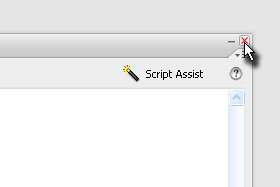 Kliknite na mali križec, da zaprete okno Actions.