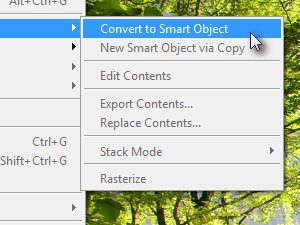 Kliknite zgoraj na Layer, Smart Objects in izberite Convert to Smart Object.