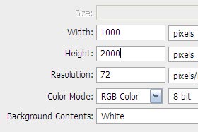 Za začetek najprej ustvarimo sliko širine 1000 in višine 2000 pikslov.