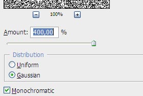 ![]() Sedaj na sliko dodamo nekaj šuma, kar storimo prek menija Filter > Noise > Add Noise. |