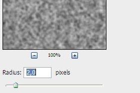![]() Sedaj sliko malekost zameglimo, tako da odpremo Filter > Blur > Gaussian Blur, vrednost za Radius nastavimo na 2.