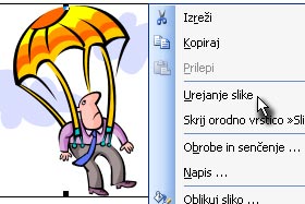 Jaz sem izbrala sliko padalca, našla sem jo v spletni zbirki Office Online - Združene države pod besedo parachuting.